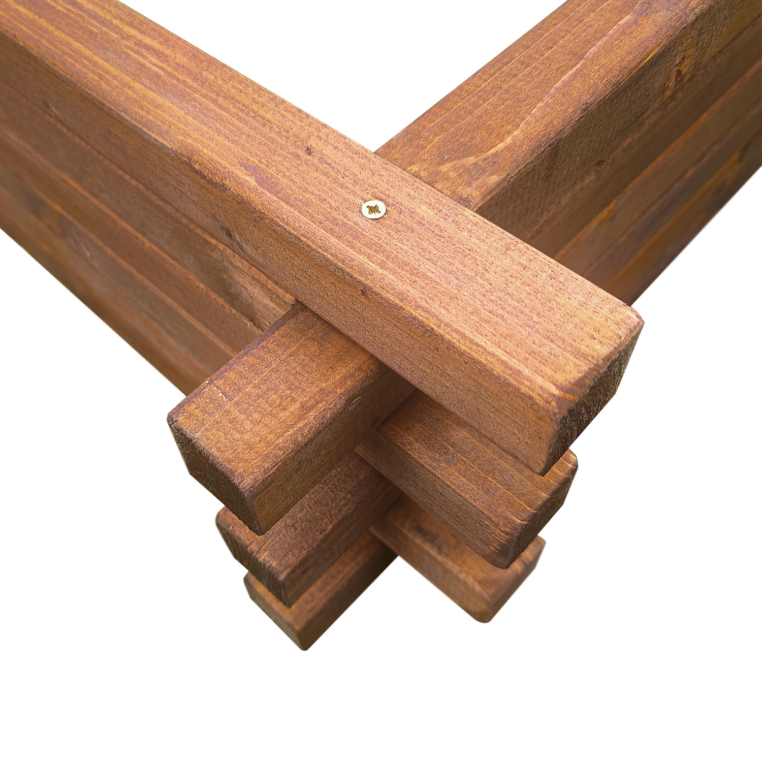 Zaprojektowana z myślą o trwałości, podwyższona grządka drewniana łączy w sobie urok naturalnego drewna z solidnym wykonaniem. Starannie dobrane deski świerkowe są precyzyjnie połączone, tworząc stabilną i wytrzymałą konstrukcję. Impregnacja drewna chroni je przed warunkami atmosferycznymi, zapewniając wieloletnią satysfakcję z użytkowania.